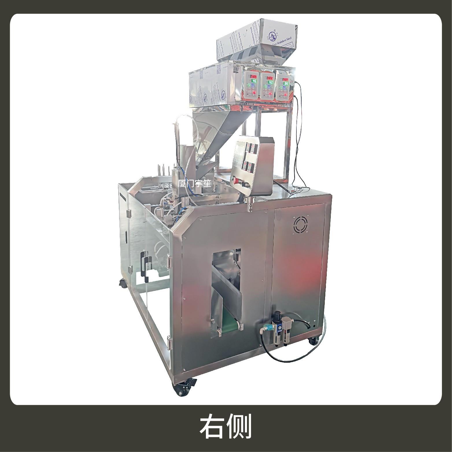 2、包裝流程全自動,無需人工操作,可抽真空、充氮氣,組合下料??筛鶕?jù)充填物料的性質(zhì)選配不同的下料結(jié)構(gòu),且可根據(jù)客戶要求配置打印批號等功能。