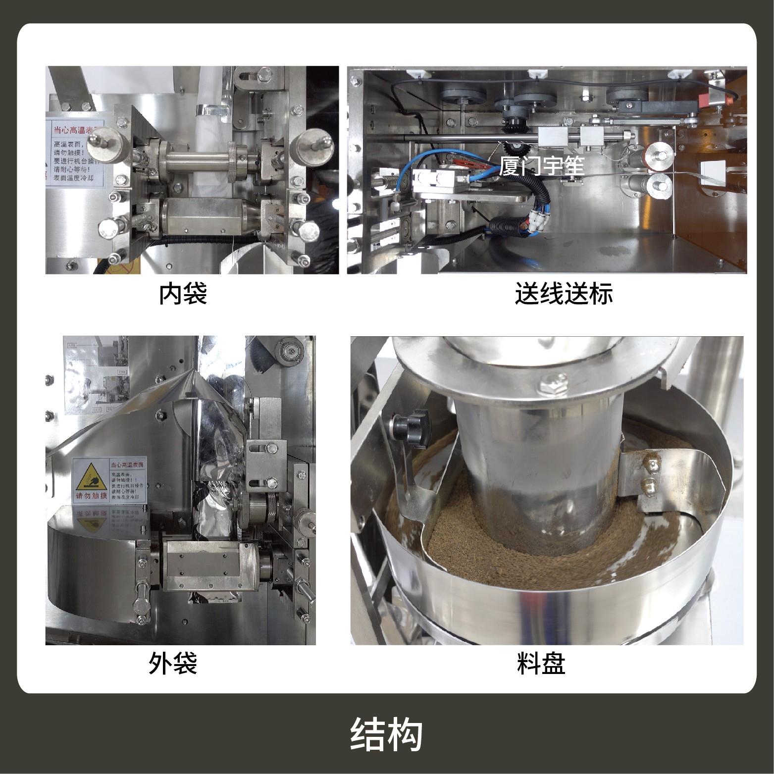 The machine is suitable for the non-returnable packaging of the inner and outer bag of small particulate materials such as: tea, herbal tea, health tea grass-root type and so on.