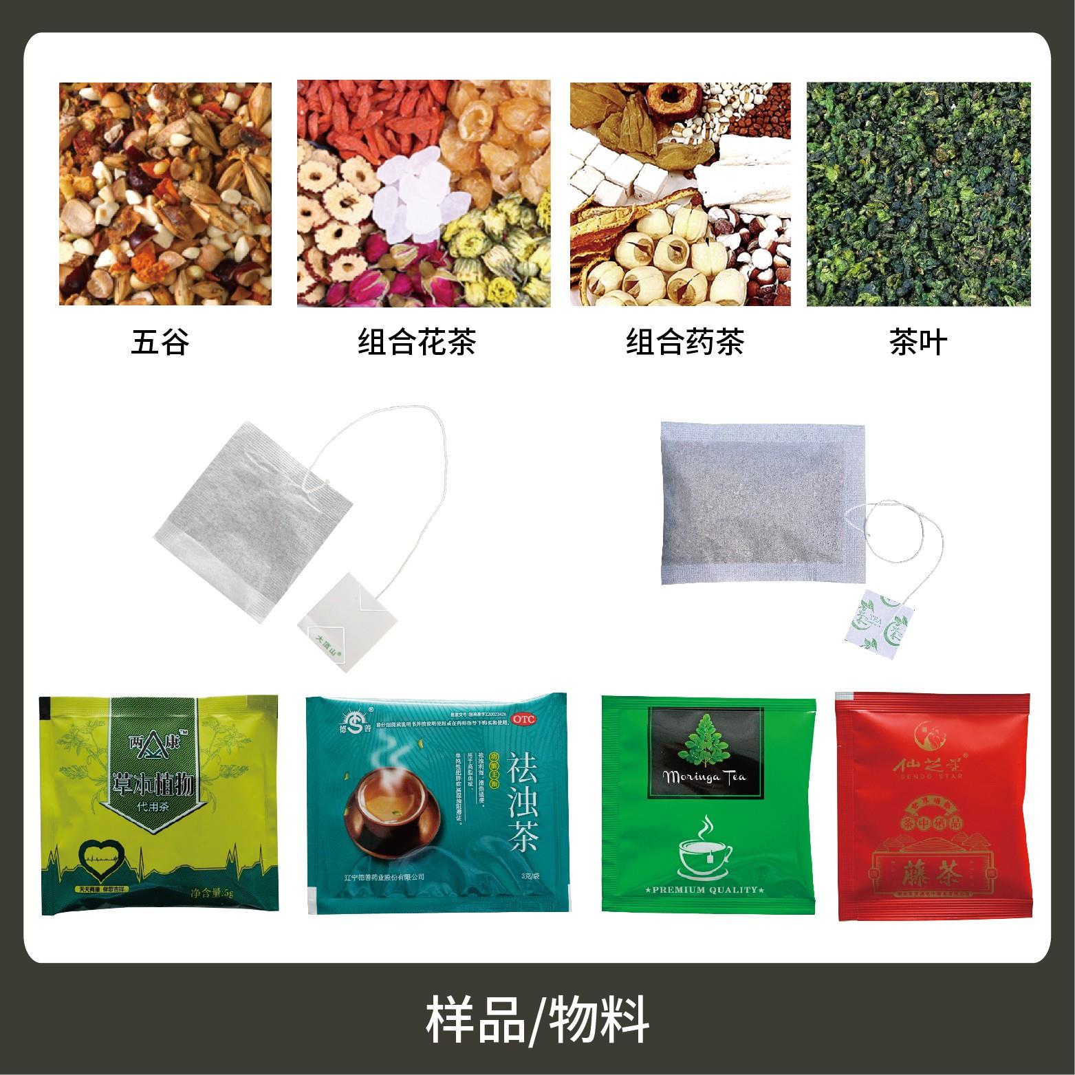 1、適用于茶葉、藥茶、保健茶草根類等小顆粒物的內外袋一次性包裝。